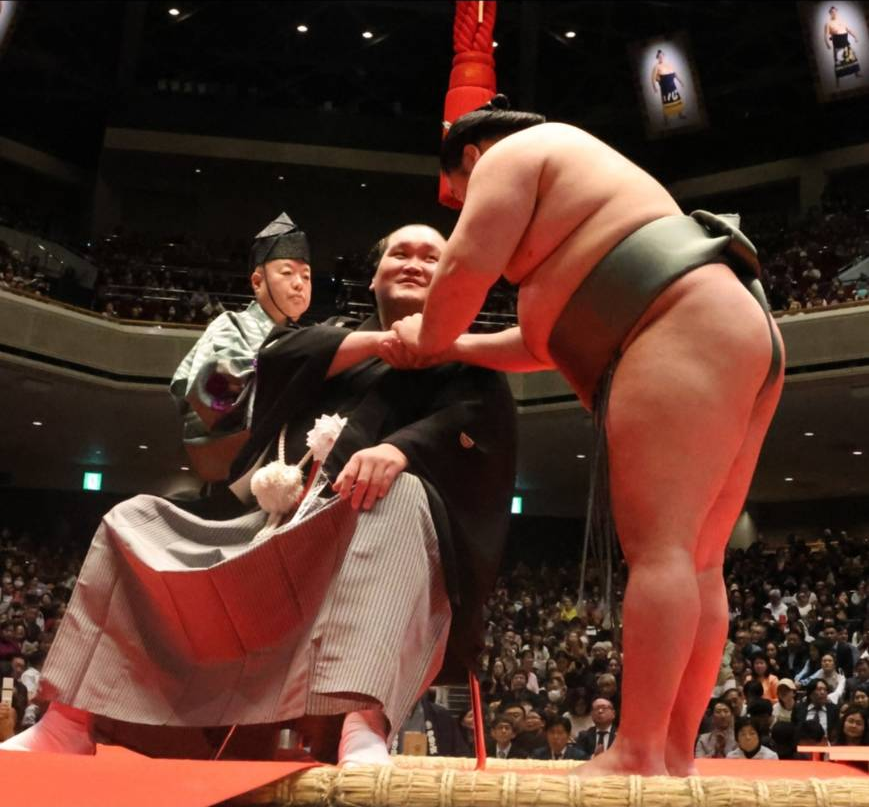 1月31日に引退相撲を行った伊勢ケ浜親方(元横綱照ノ富士)の断髪式では、同期としてはさみを入れた明生関 その際に、親方から手を差し出され、握手を交わしました。 約330人が参加した断髪式で、親方が握手を求めた唯一の場面でした。 また、明生関は同期から横綱が出て、いい影響をいただいたと語っています。